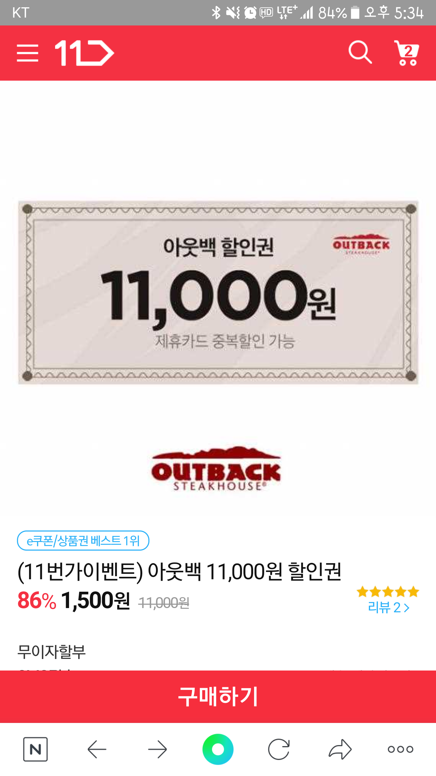 [11번가] 아웃백 11,000원 할인권(1,500원/무료) 구매가능 > 자유게시판