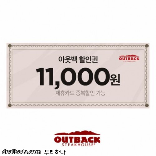 [11번가] 아웃백 11,000원 할인권(1,500원/무료) 구매가능