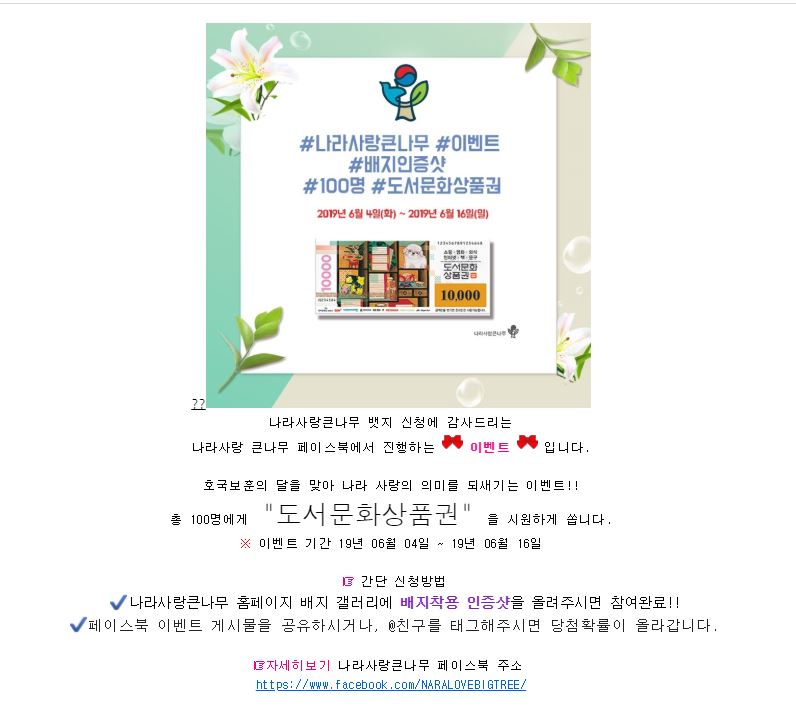 배지착용 인증샷 올려주시면 도서문화상품권 1만원권, 100명 증정 이벤트입니다.