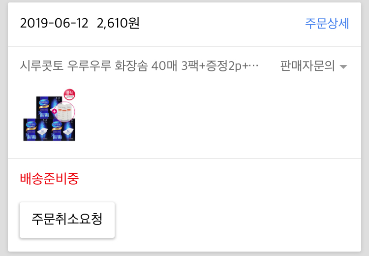 핫딜 화장솜 취소 전화 왔어요.