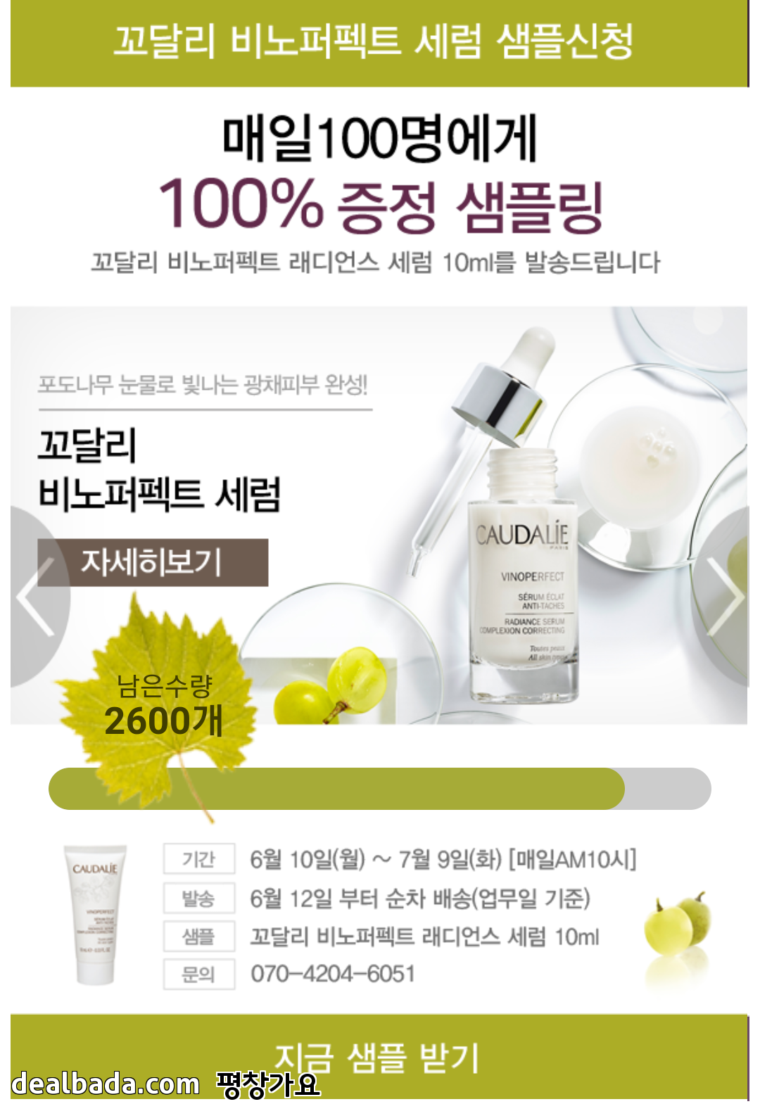 7월 9일까지 매일 아침10시 선착순 100명 한정으로 세럼 10ml 발송됩니다.
