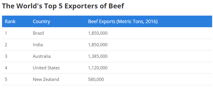 소고기 최대 수출국.