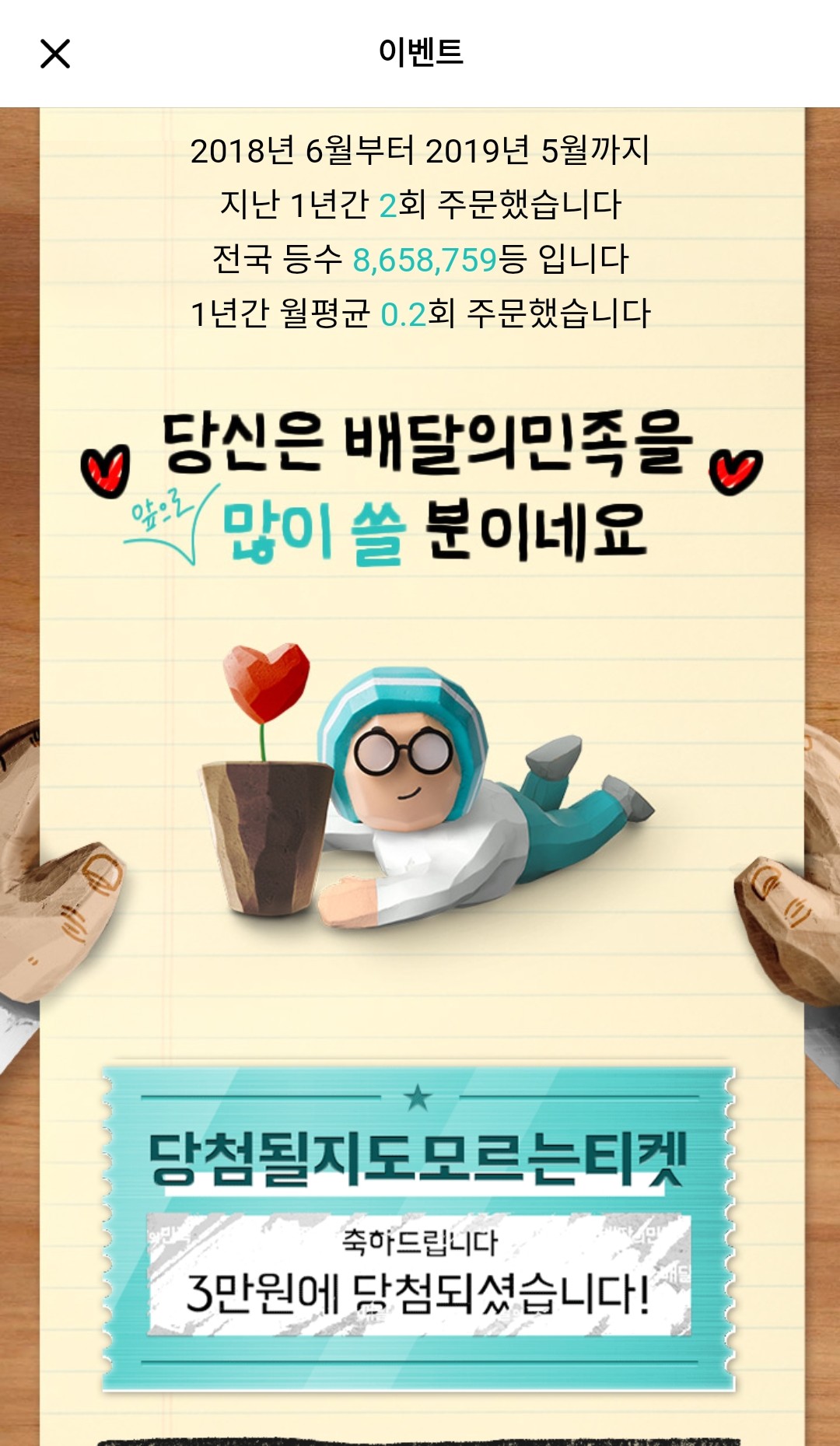 배달의민족 총 2회 주문한 아이디도 당첨되네요?!
