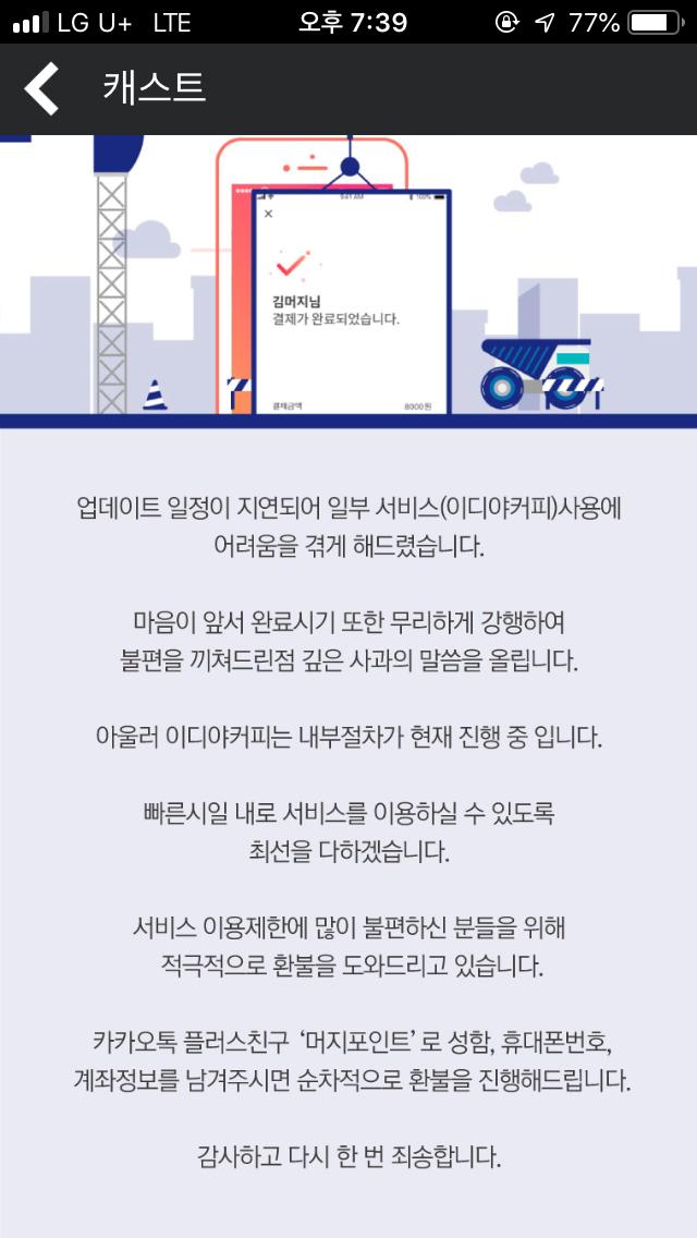 이디야는 공지가 없네요ㅠㅠ