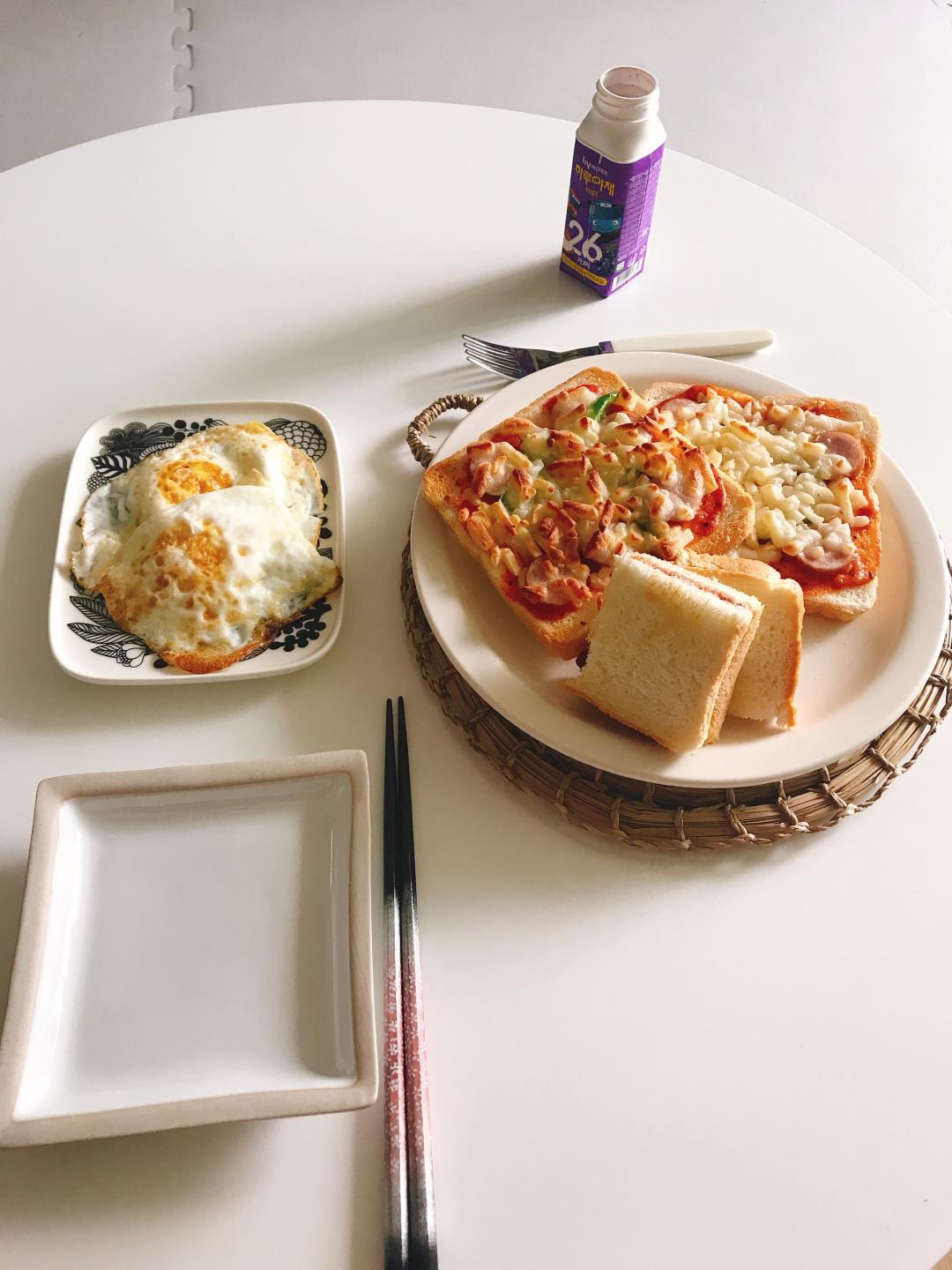 간단하게 피자식빵 과, 친구가 정성 듬뿍 담아 만들어 준, 딸기쨈 한쪽 발라 주면, 아이는 세상 좋아해요.