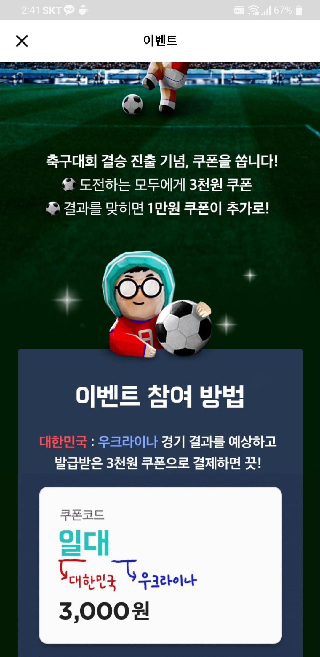 요기요는 응모하면 3천원 쿠폰 주고 사용기한만 오늘이고, 이벤트는 따로 그냥 참여네요. 당첨금액도 비교안되게 크고~