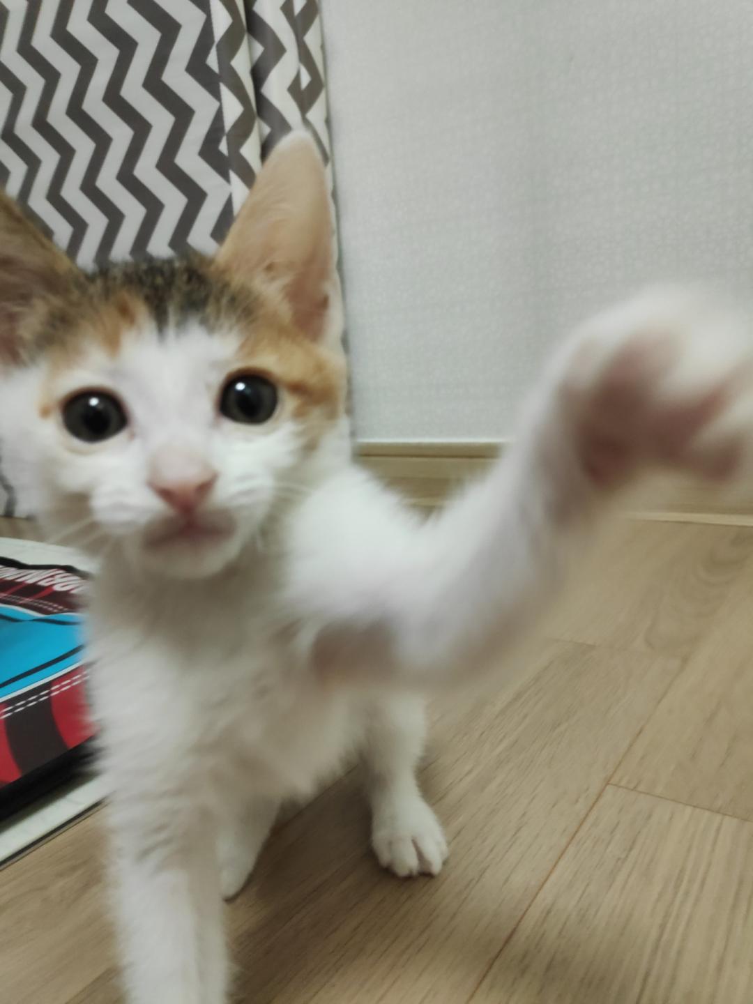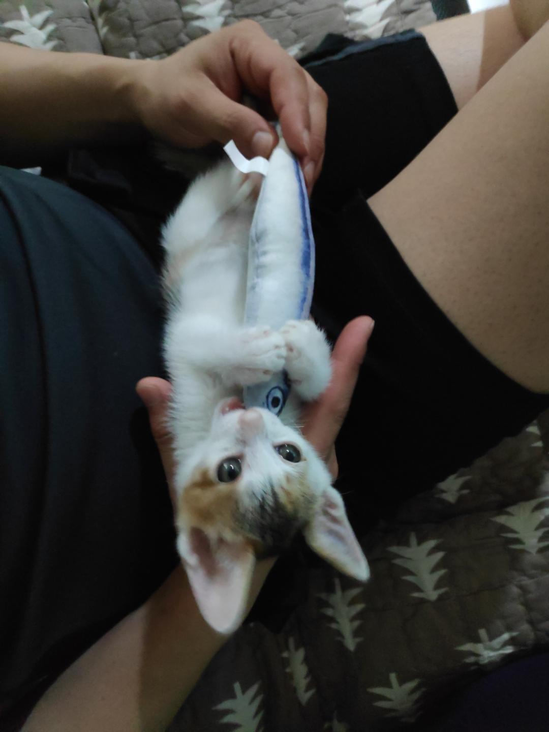 2주전에 보호소에서 데리고온 길냥이 아기에요.