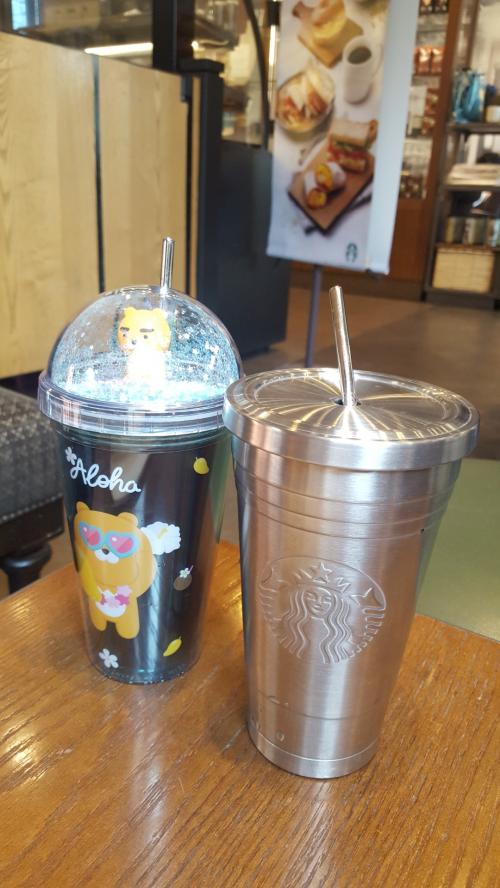 스벅 텀은 두개 소장하고 있고..앞으로 텀블러는 평생 안살생각이었는데요 ㅠㅠ 카카오가 이뻐서 앓고 있으니 지인께서 선물해주셨어요. | ||