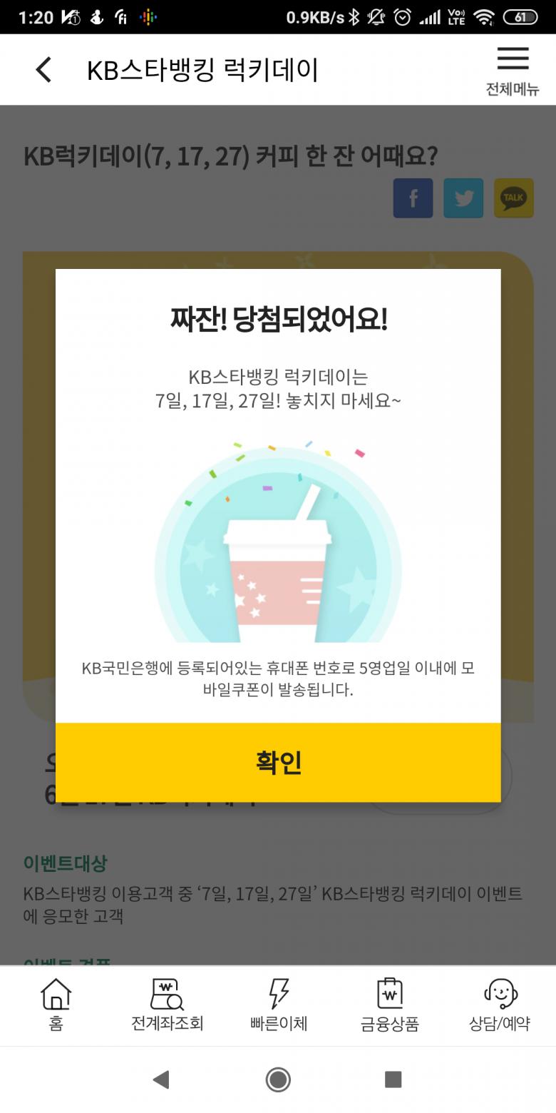 -KB스타뱅킹 로그인 > 이벤트 응모하기 > 실시간 당첨확인