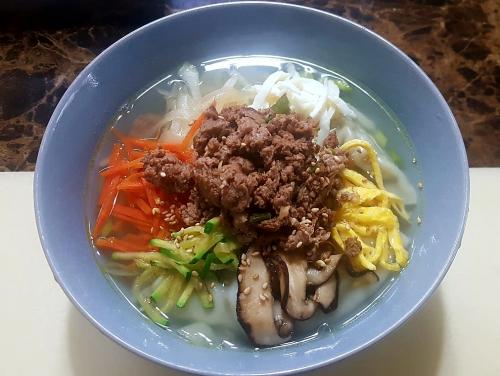 오늘점심은 남편이 집에 들러서 먹는다 하여 만두국 끓였어요..집에 옥수수면 있어서 국수도 넣었네요.