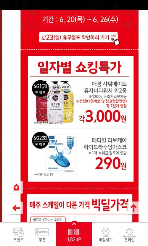 홈페이지가봐도 이번주는 홈플전단이 안 나온건가,  안 뜨더군요. 전단지에 나오는 요일별 특가 정보인데...