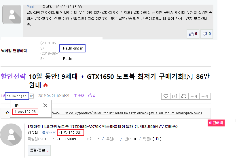 다나와에 아이피가 같은 블루스탐이 있고 아이피가 같은 paulmongan도 있음 둘은 서로 추천중