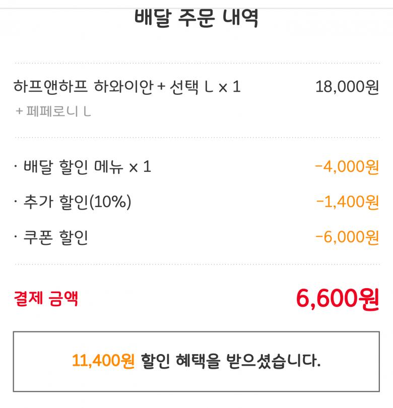 치즈크러스트 추가해서 페이코쿠폰 적용하고 만원 썼네요.
