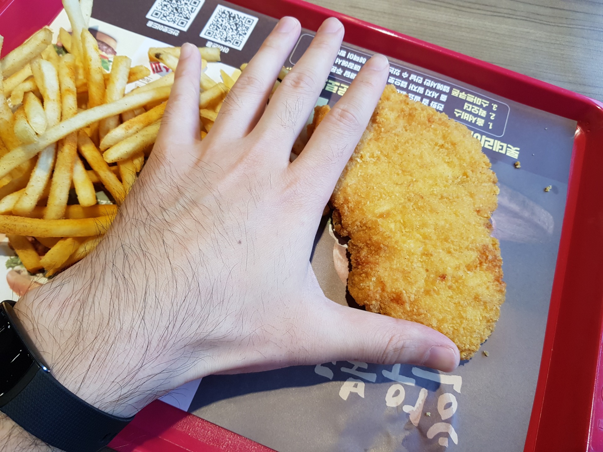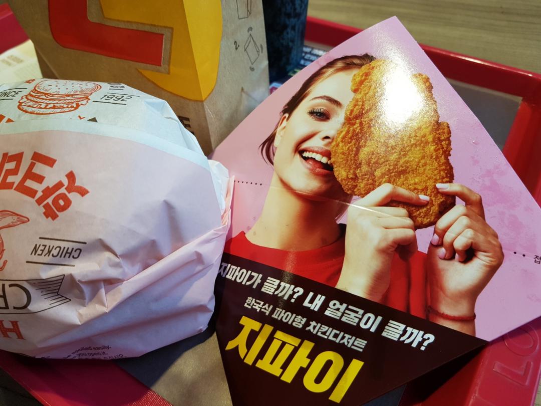 지파이는 얇고 넓적해야 하는데 좀큰 치킨패티인듯요 ㅠ |