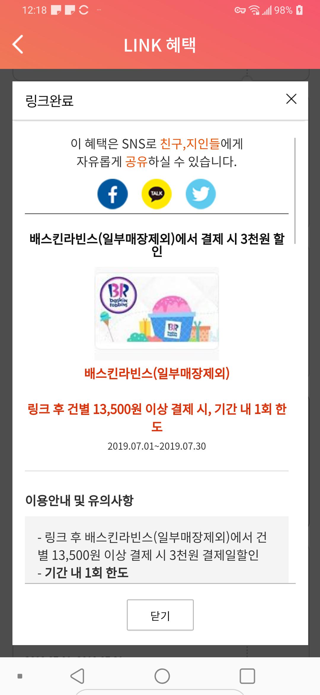 삼성카드 배스킨 링크혜택 있네요 13500이상 3천 할인 > 자유게시판