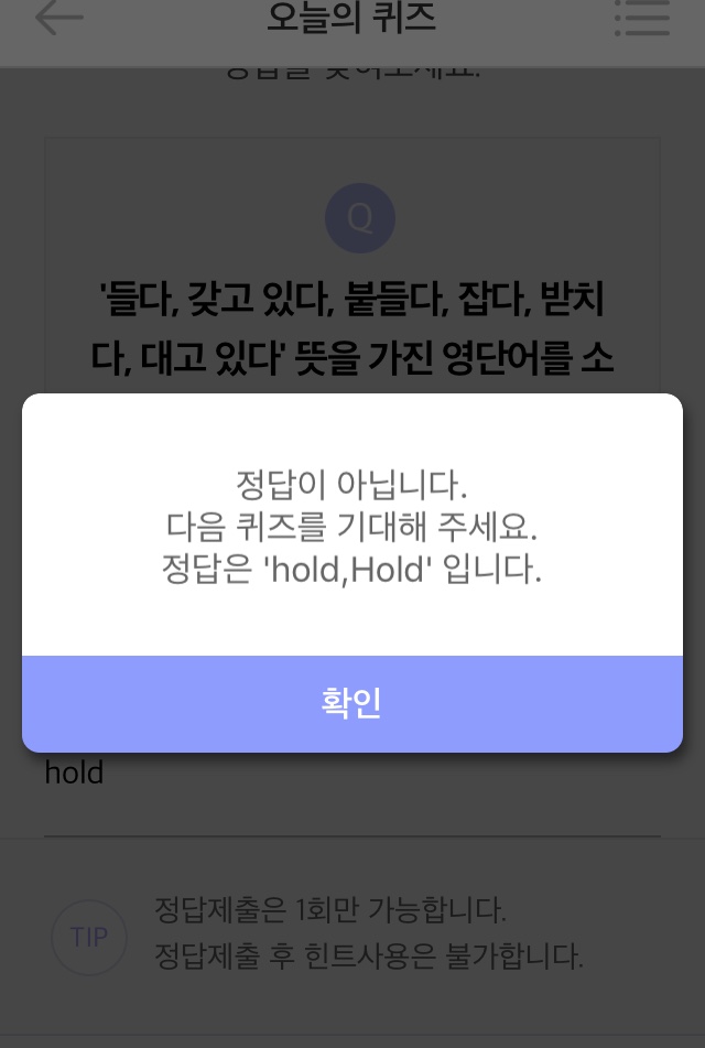 hold,Hold 했는데 정답이 아니라고 정답은 hold,Hold 라고 하네요. ㅎㅎㅎ