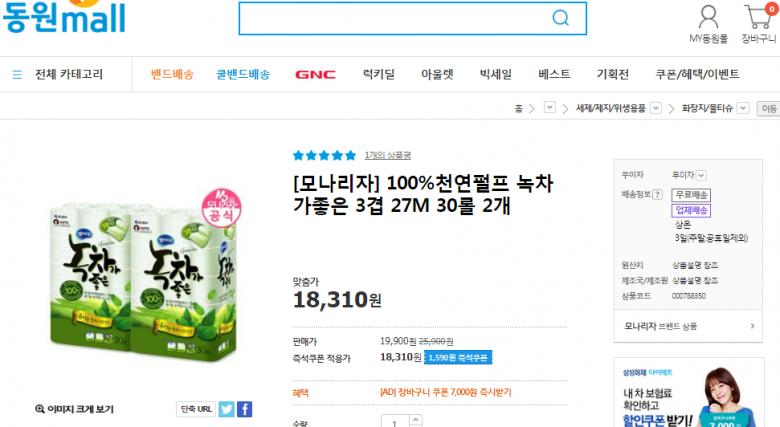 벨라지오(모나리자 자회사) 제품중에서 '녹차가 좋은' 이라는 녹차색상으로 된 3겹 27m x 30롤 있는데요