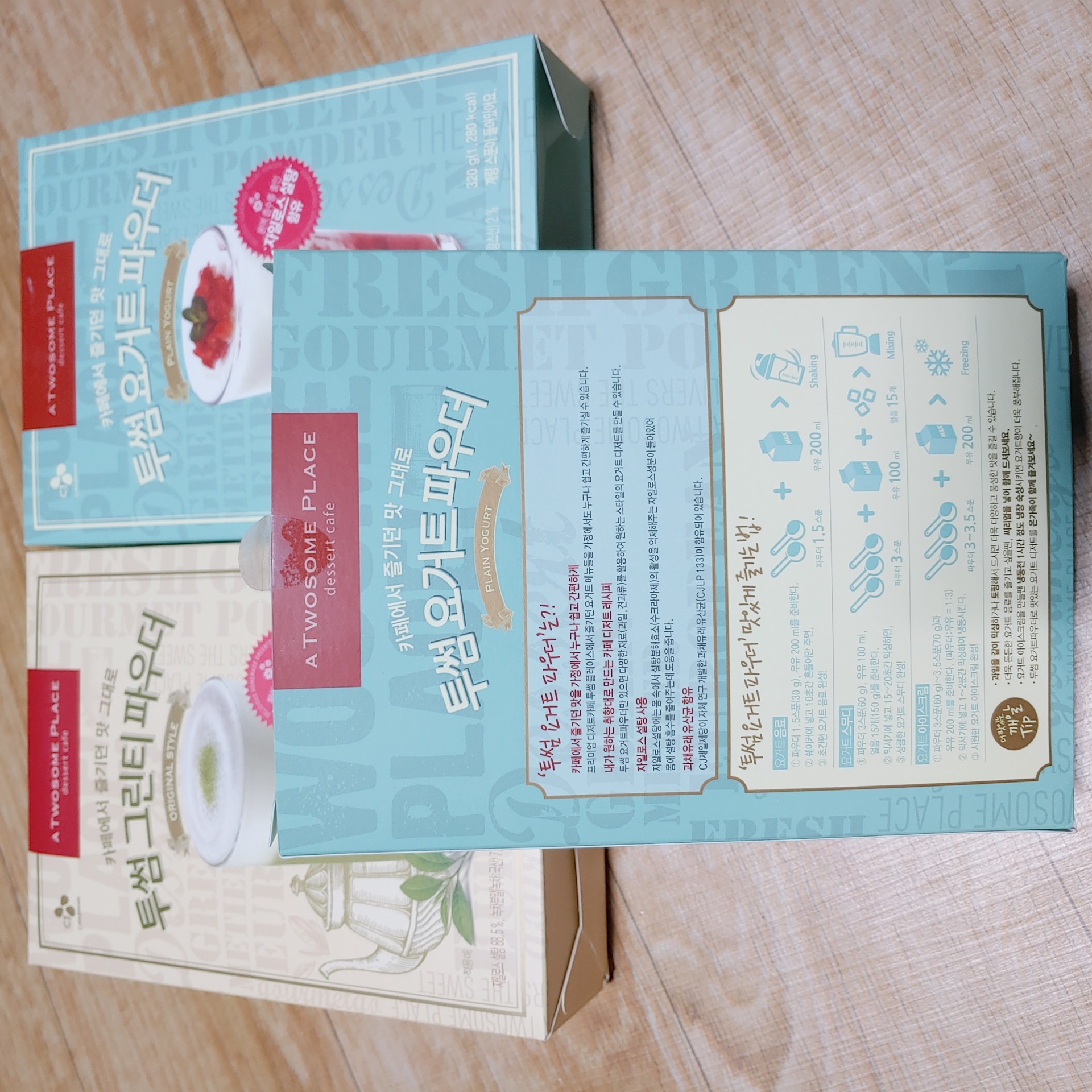 저도 요거트 먹어보고 싶었는데 그린티 2개 요거트 1개 옵션이 없어서 그린티 3개로.. ㅠㅠ |
