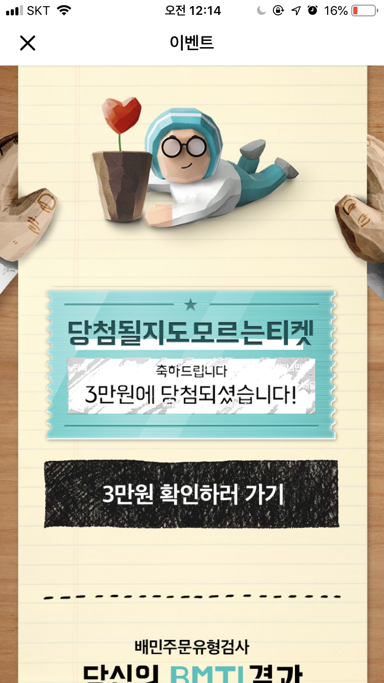 이게 삼천명 주는데도 배민쓰는 사람이 많아서 그런지 확률이 그닥이더라고요...저는 그래도 며칠전에 됐는데 제동생은 맨날 울고있습니다..ㅋㅋㅋ 축하드려요!! 동생안자면 지금 해보라 그래야겠네요 ㅎㅎ |