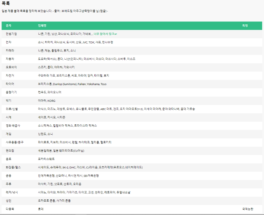 일본 브랜드 정리가 잘되어 있어 가져와 봤습니다.