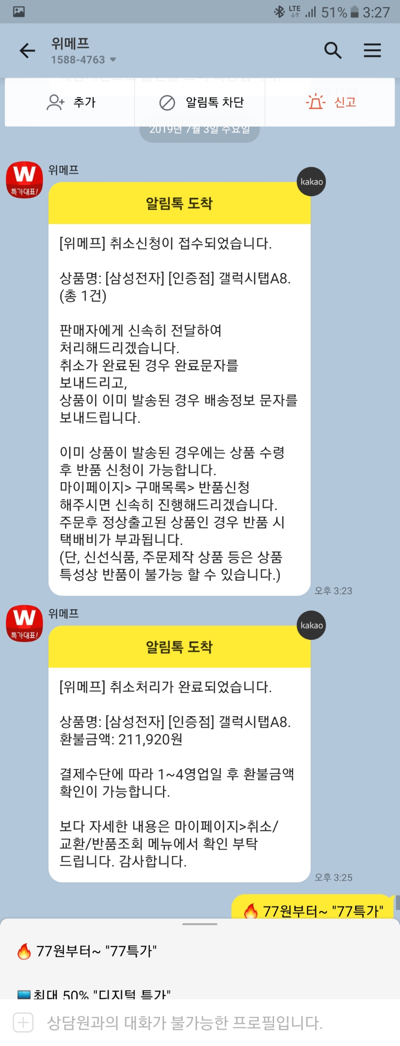 당일 취소도 아니고 8일날 보내준다고 문자까지 보냈다가 가격 오등록이라고 일괄 취소.