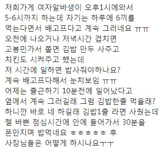 저렇게 무상제공은 알바입장에선 징징대니 먹을게 막나오네?