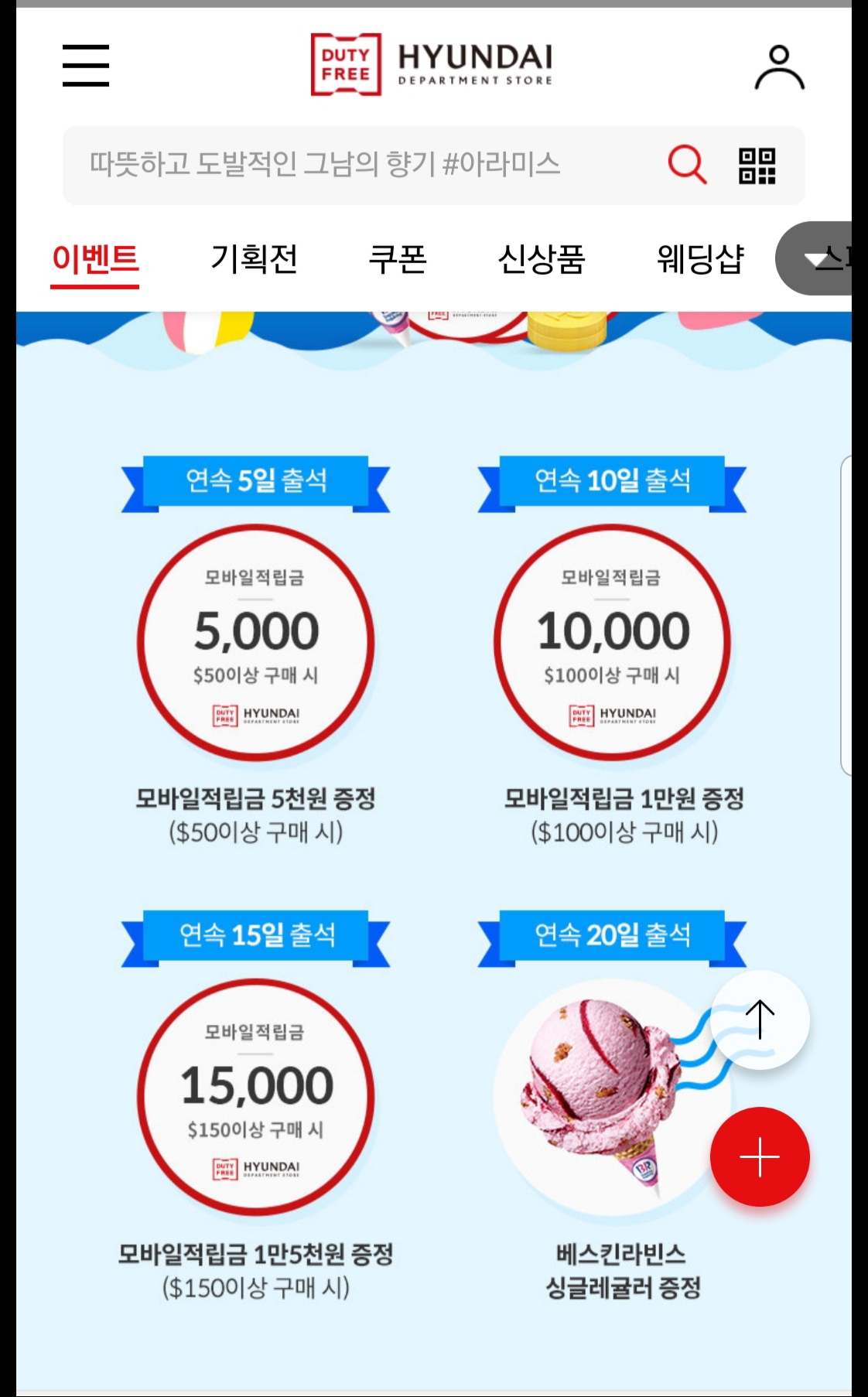 현대면세점은 가입한 적이 없는 것 같은데 다른 곳처럼 가입 혜택이 있을까요?^^