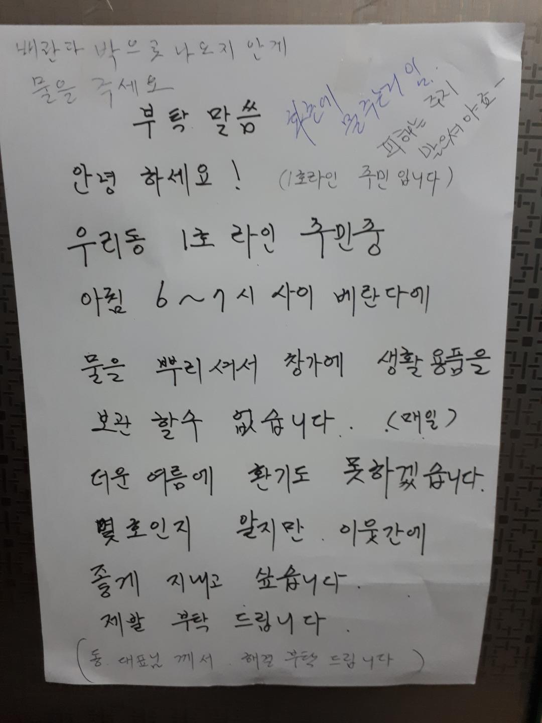 베란다 밖으로 나오지 않게 물을 주세요, 피해는 주지 말으셔야죠가 추가됐어요