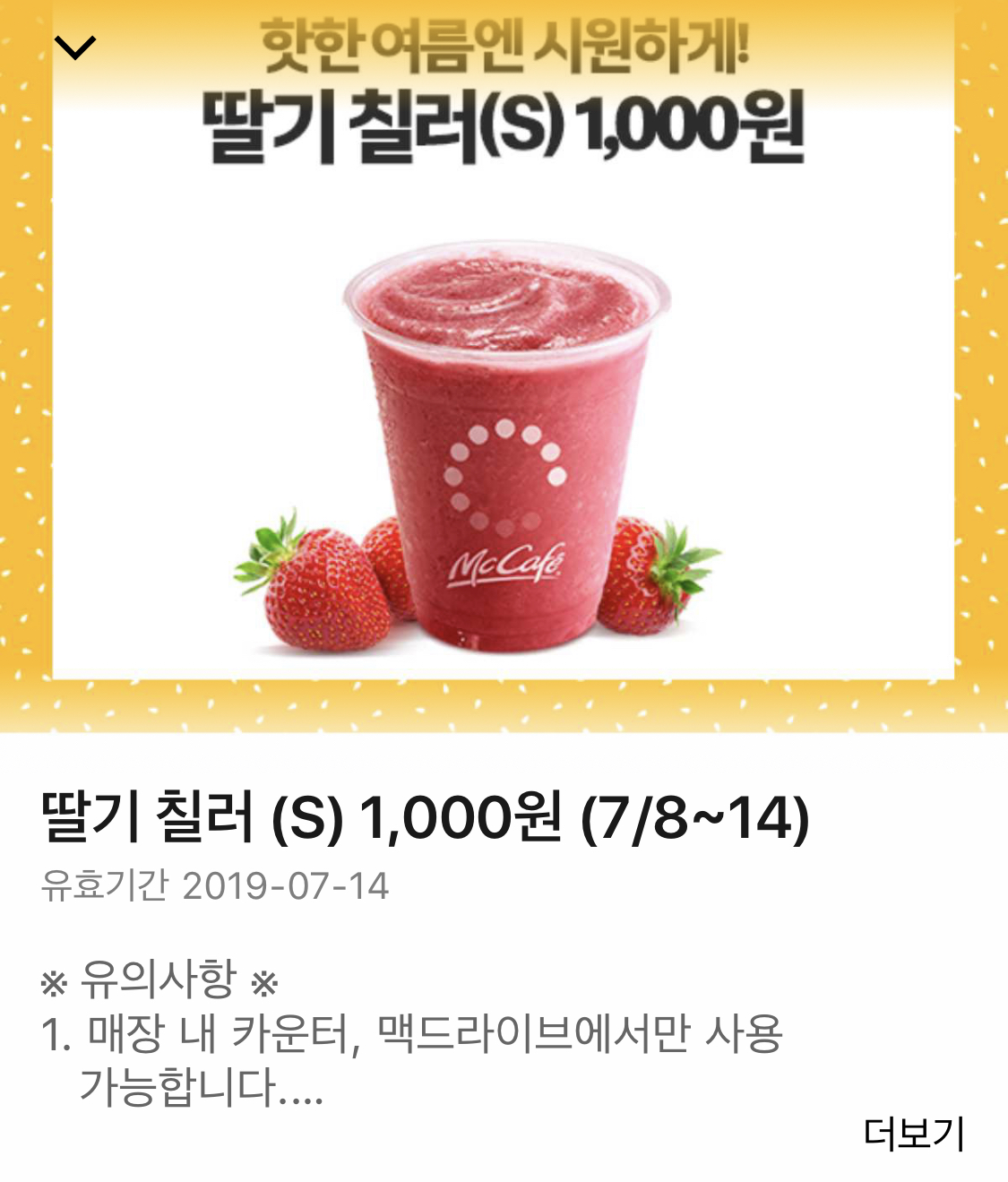 맥날앱 딸기칠러 1000원 쿠폰이 있네요 > 자유게시판