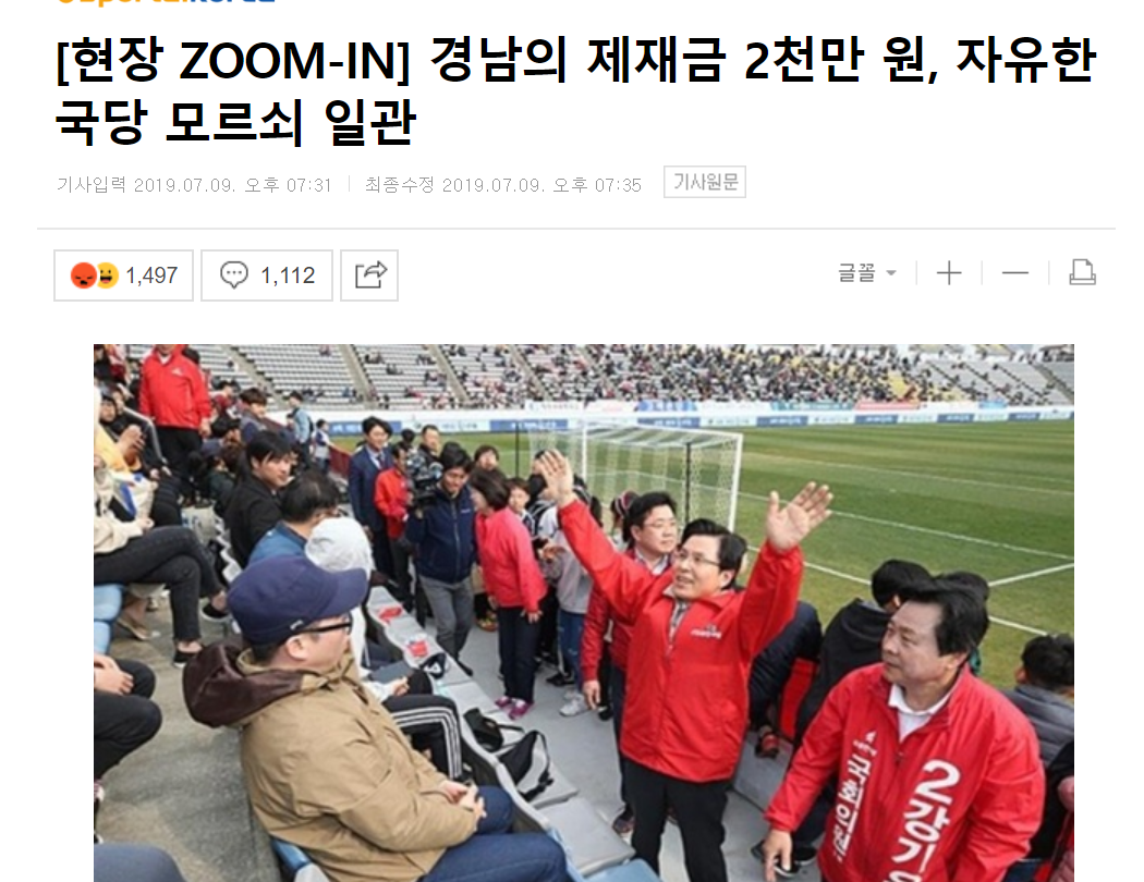 경남FC 홈구장에서 선거운동하다 경남이 제재당하는 사건이 있었습니다
