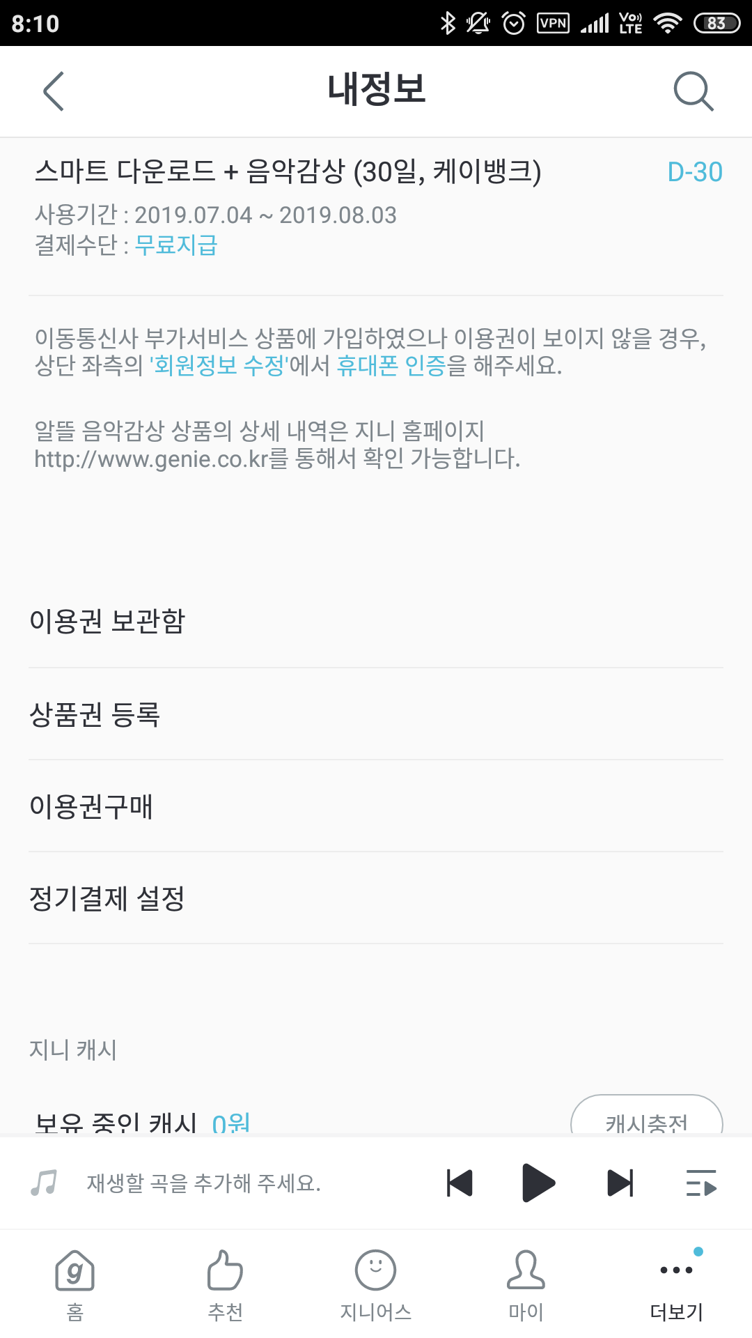 지니이용권이라 ㅎ 좋군요 ㅎ