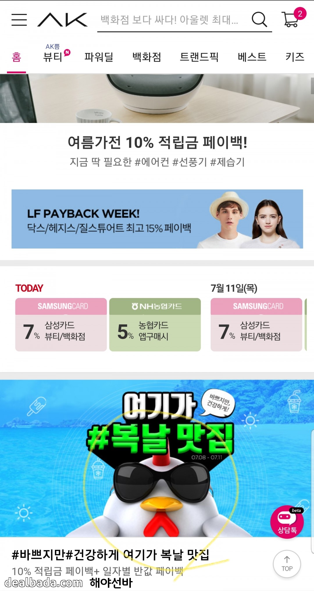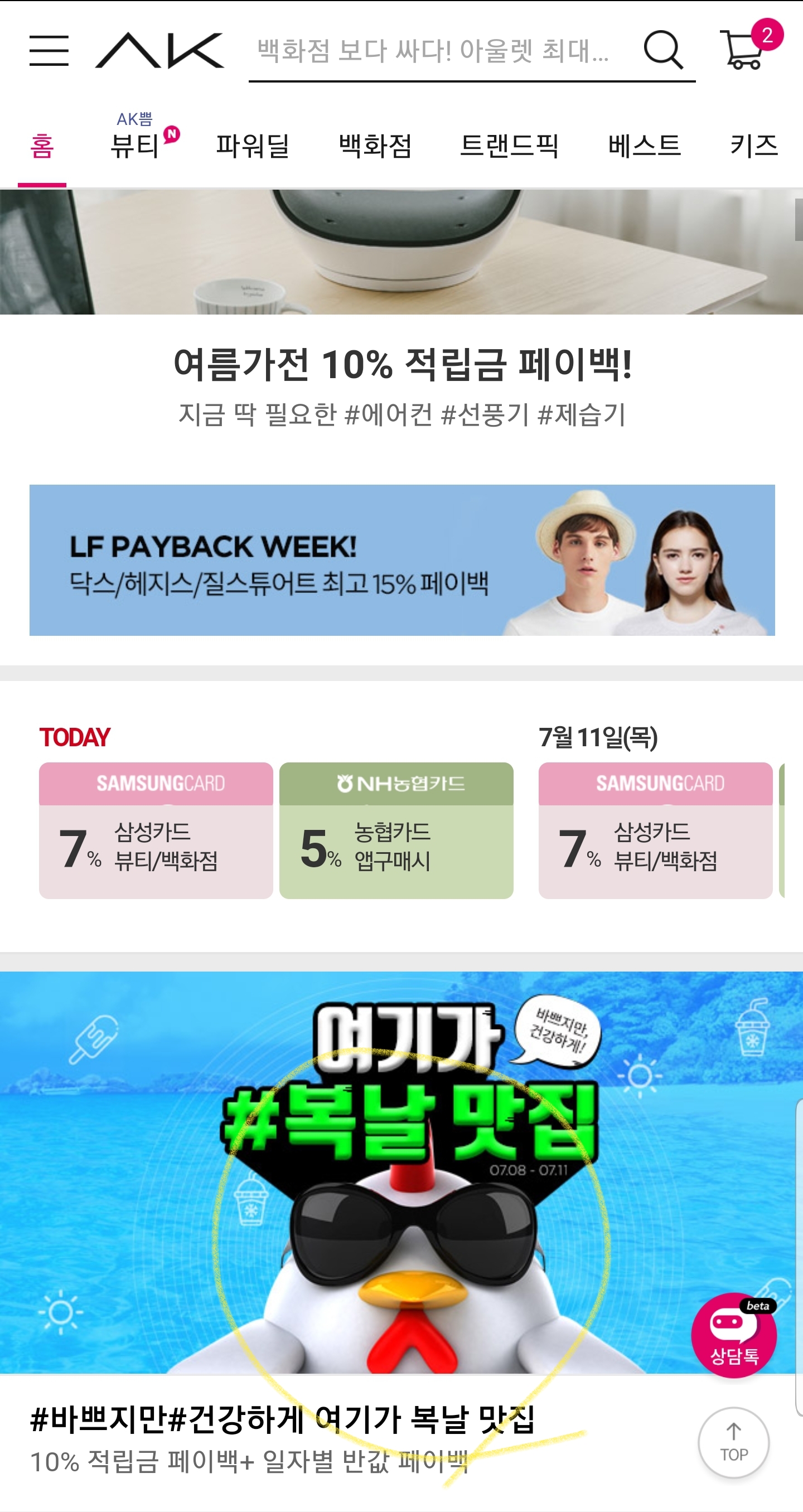 AK몰에 초복이라고 페이백 이벤트 진행중입니다. 페이백 상품을 구매하면 적립금으로 50% 페이백 해주는 겁니다.