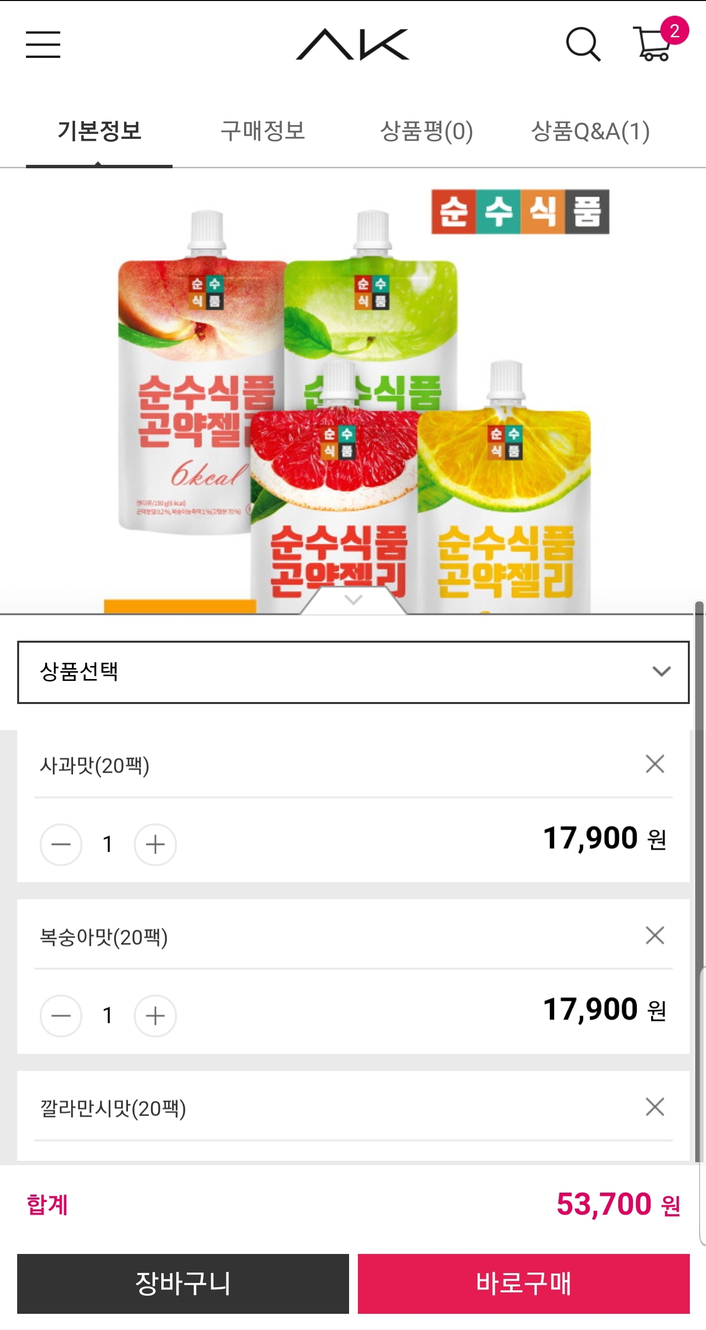 2. 곤약젤리 20팩짜리 3개 + 섬유유연제 구입 (57250원) - 위 혜택 적용 후 결제하면 5725원 캐시백