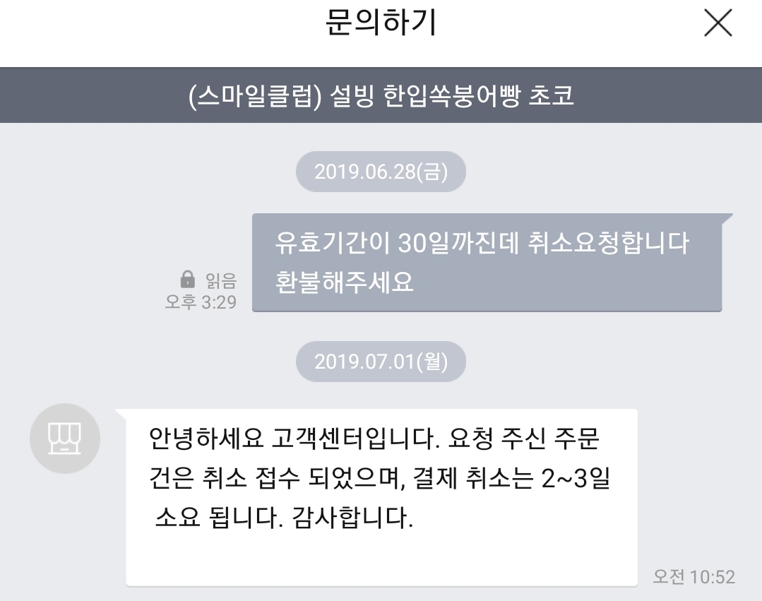 고객센터에서 3일이내 환불해준다는 답변을 믿고