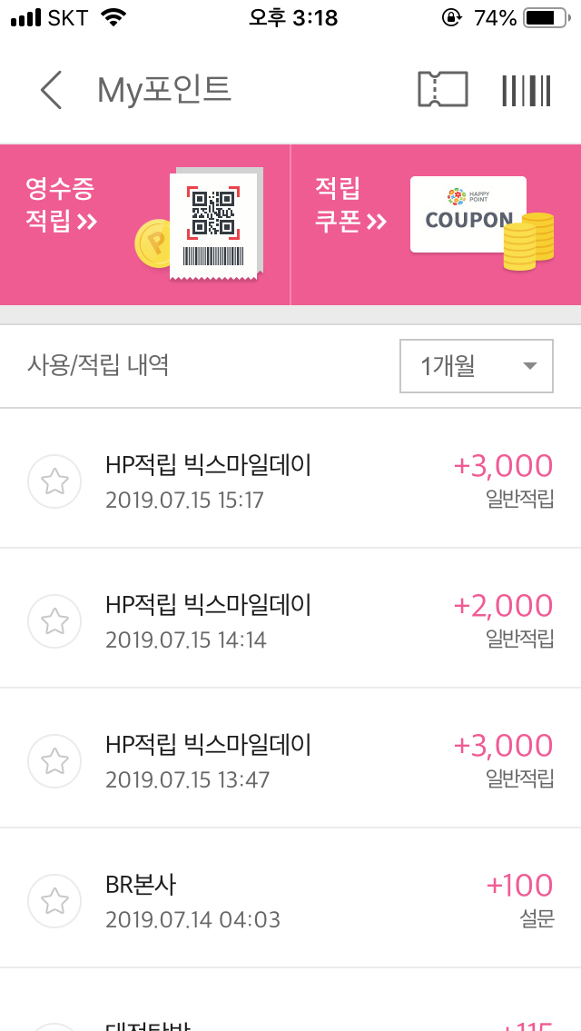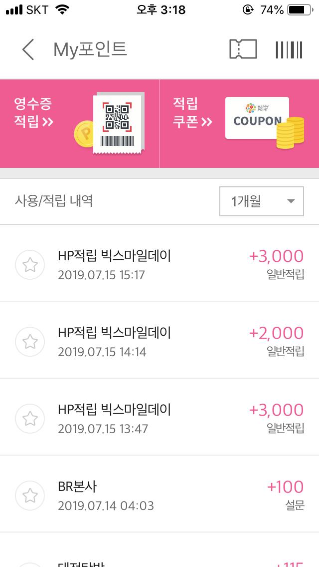 세번째 3000점은 6/29일 사용한 지마켓 배스킨 아메리카노 인거 같아요