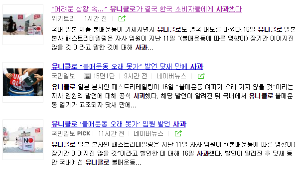 유니클로 사과로 검색되는 기사는 총 3개입니다.