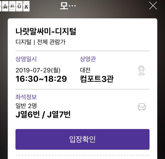 컴포트관 자리 두 개 차지하고 편하게 봤어요