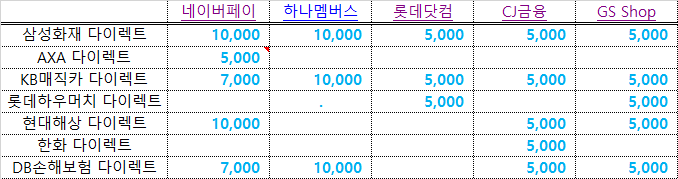 CJ 금융 : https://insu.cjmall.com/shop/insu/car/car_comp_index.jsp