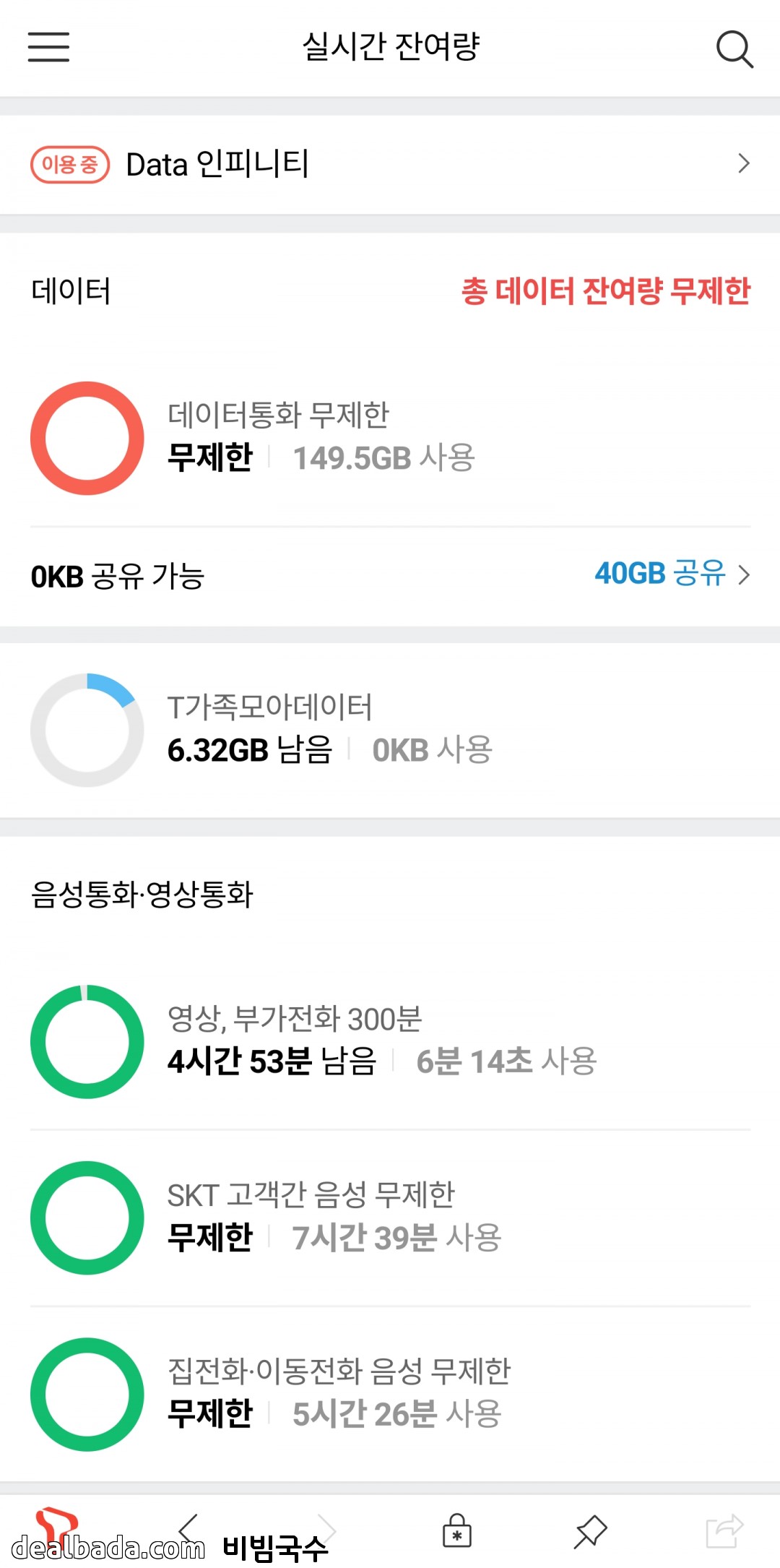 와 엄청난 데이터 사용량이네요! 전 6G도 다 못쓰는데요. |