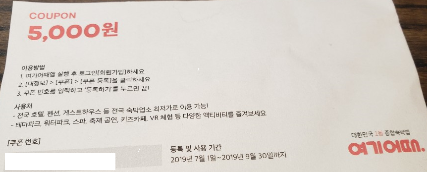 완료)여기어때 5천원 할인권 나