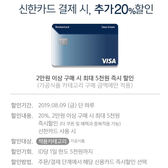 신한카드 20% 즉시 할인 (2만 이상 최대 5천 할인)