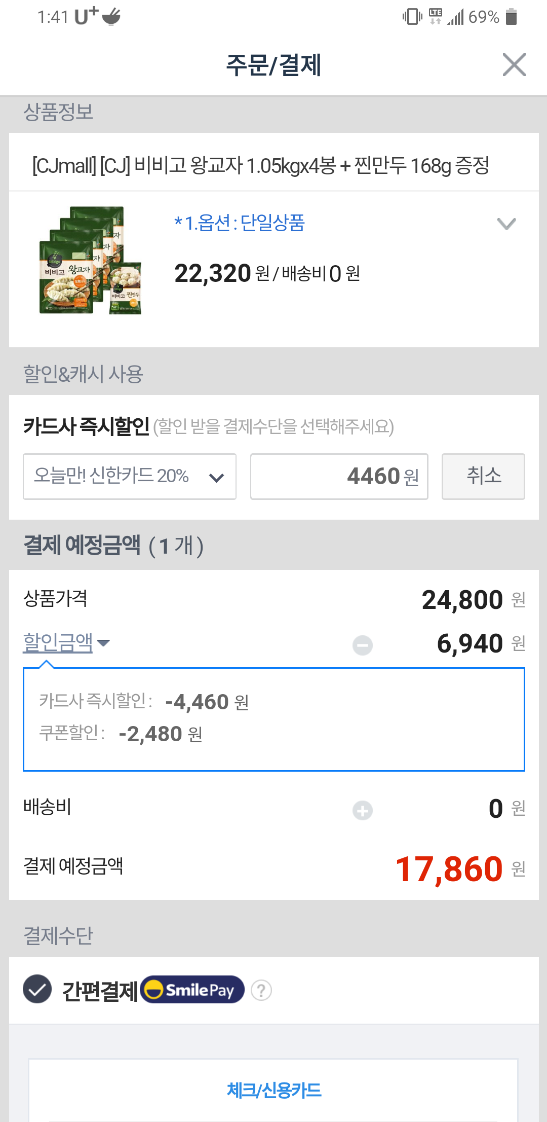 최종금액 17860원 나왔습니다.