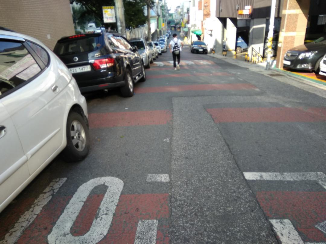 저기 앞에보이는 학생보다 더 왼쪽으로 붙어서요. 옆으로 차도 지나갈수 있었죠.