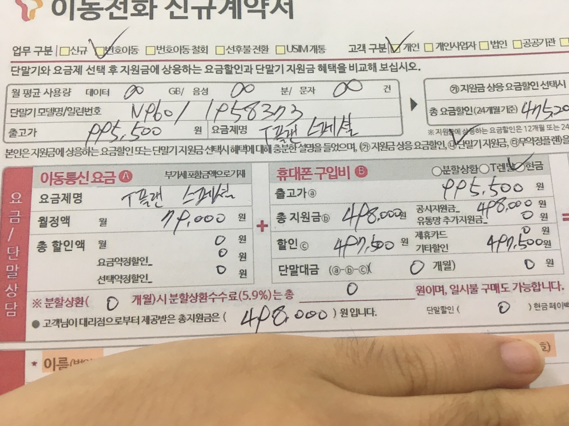 n960이면 노트9고 skt 79요금제 번이면 0원에 타셨겠네욯ㅎ