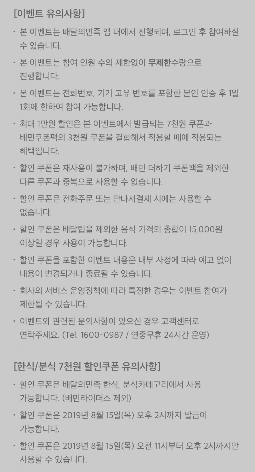 요기요처럼 한식 분식만 되는데 15000원 이상 주문할 경우에는 크게 나쁘지 않을 것 같기도 하고 또 요기요에 없는 매장도 있고해서 저는 우선 쿠폰 받았어요^^