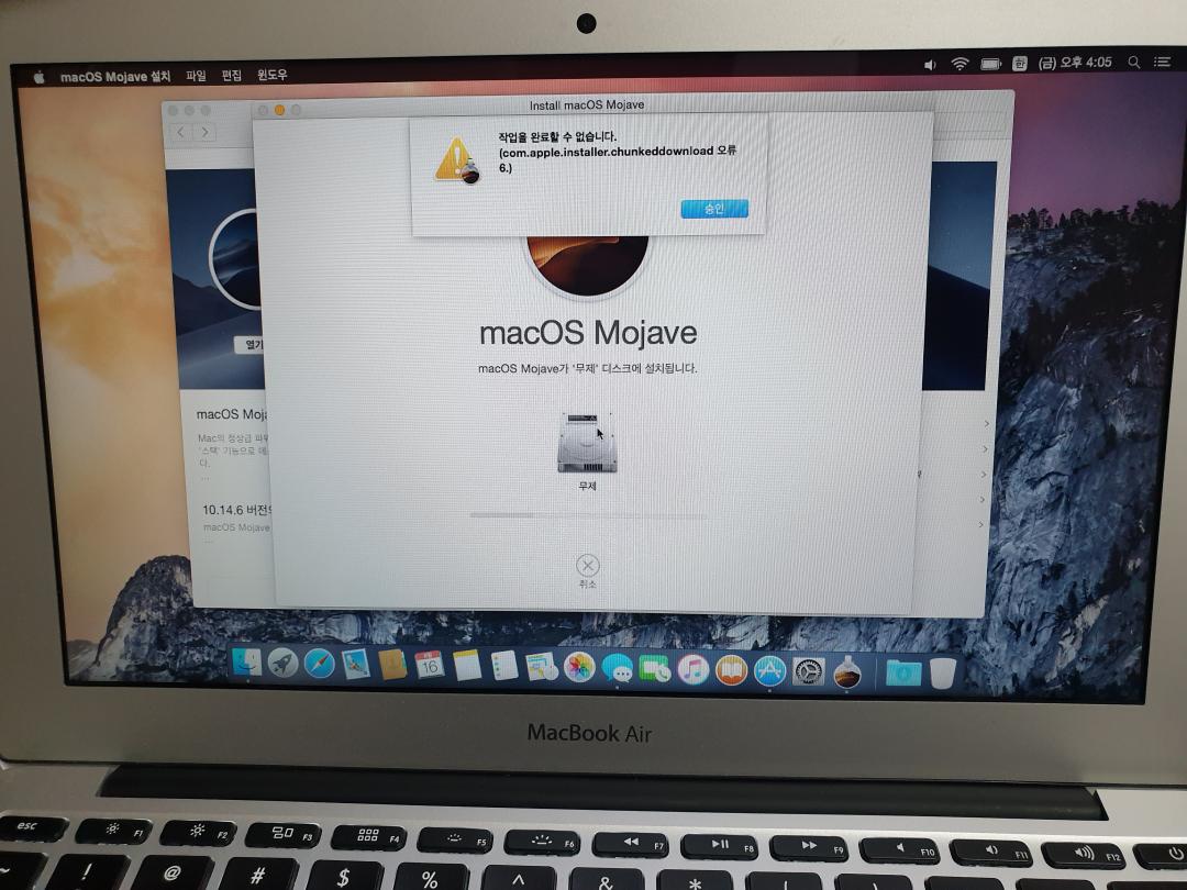 구버전 os이길래 모하비 업데이트 하려고 하는데 자꾸 실패가 뜨네요..