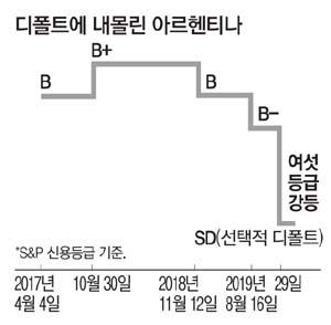 무디스가 디폴트 바로 이전 단계로 아르헨티나를 강등했네요.