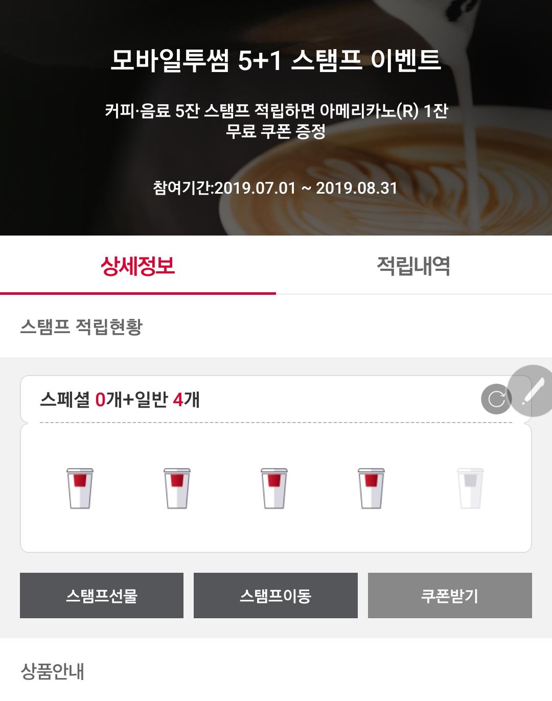 (완료)투썸 5+1 스탬프 1개 팔아주실분 구합니다!! > 자유게시판