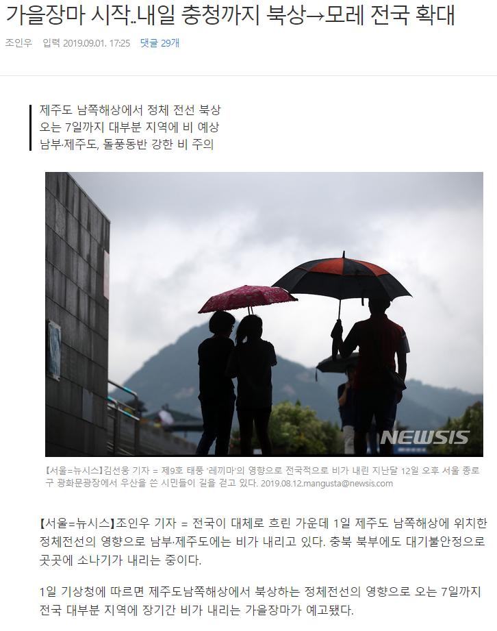 뭐 장마전선이 늦게 올라오면 가을장마라고 불렀던거 같네요