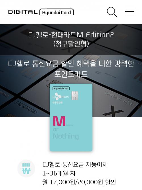 cj 헬로 인터넷+ 티비 쓰고 있는데 6000원이라 하나카드 5000원 할인 쓰고 있어요